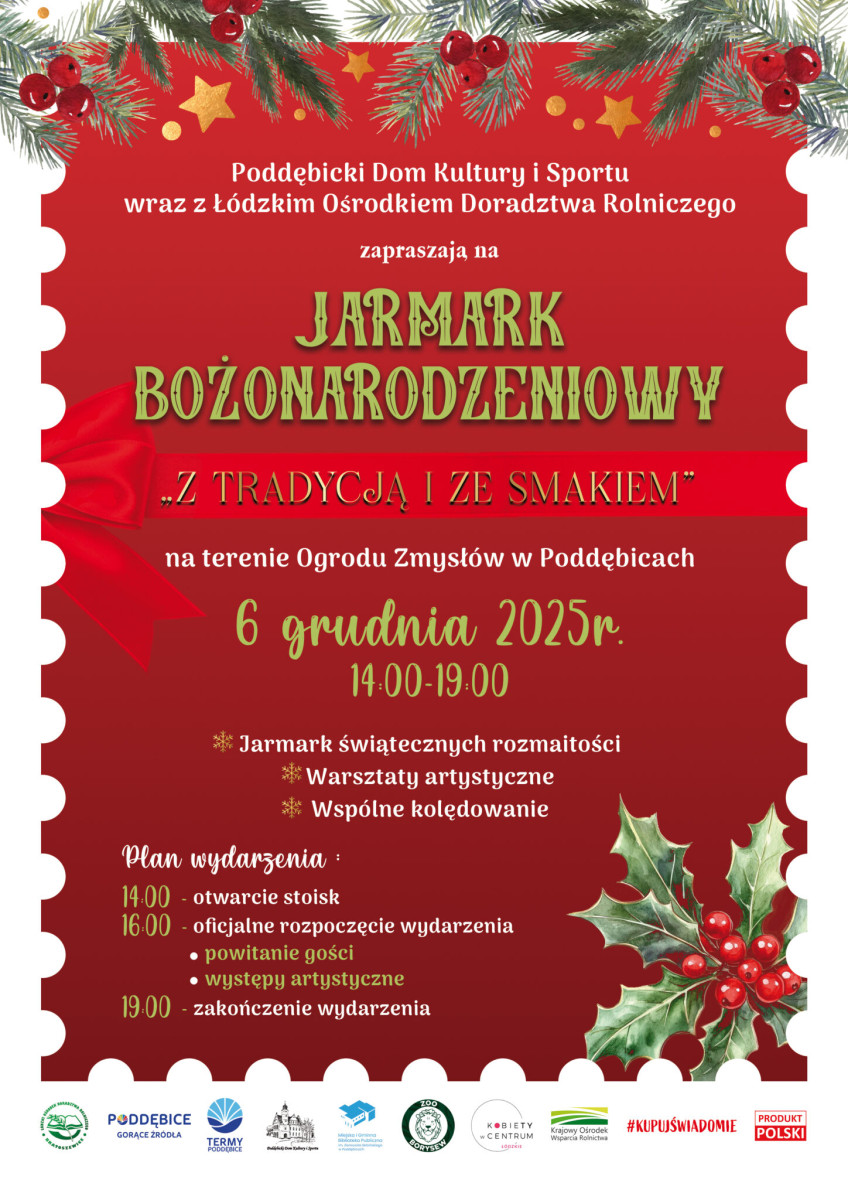 Stragany pełne rękodzieła, wyrobów artystycznych, rzemiosła, kulinarnych przysmaków i aromatycznych napojów oraz świąteczne dekoracje, magiczna atmosfera i piękna muzyka, to tylko niektóre z atrakcji jakie będą czekać na Państwa podczas Jarmarku Bożonarodzeniowego na terenie Ogrodu Zmysłów w Poddębicach. - informują organizatorzy imprezy.