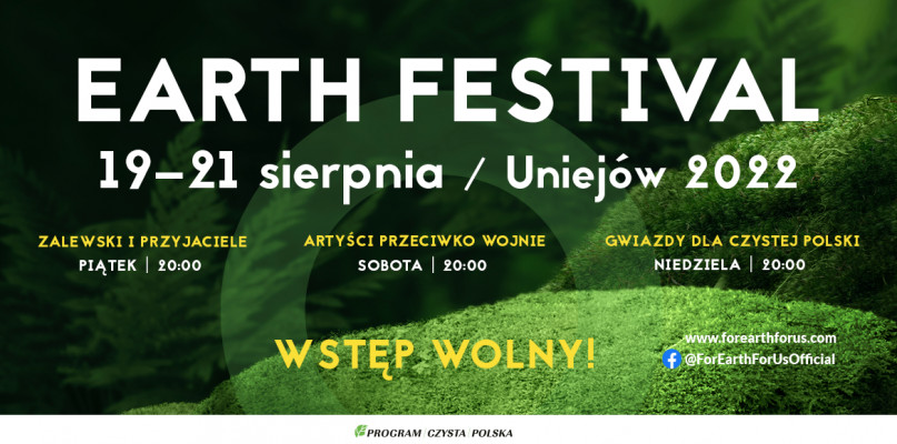 Przed nami 5. już, jubileuszowa edycja Earth Festival Uniejów 2022!To trzy festiwalowe dni, trzy wielkie koncerty z udziałem ponad trzydziestu znakomitych polskich artystów oraz artyści z Ukrainy, 2 dni eventowych atrakcji w Ekomiasteczku. Wydarzenie odbędzie się w dniach 19- 21 sierpnia 2022r.To także trzy filmy w festiwalowym kinie oraz wielkie sprzątanie i sadzenie drzew w ramach akcji „Czyste Zielone Miasta” - informują organizatorzy na swojej stronie internetowej.