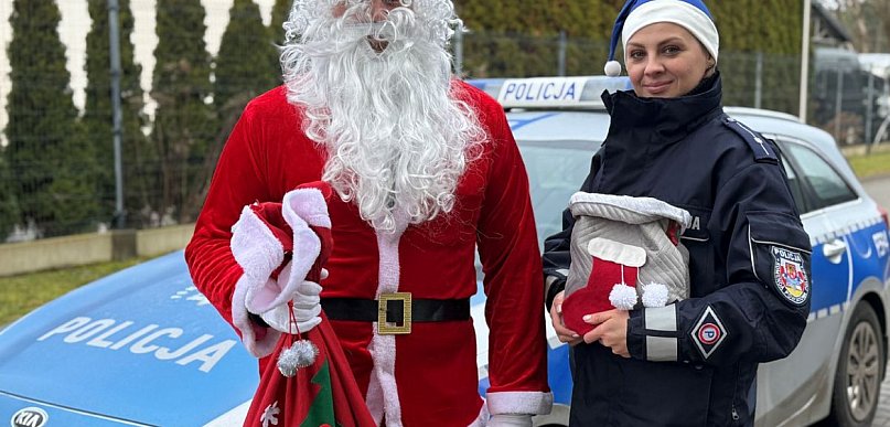 Policyjny Mikołaj znów na drogach powiatu – świąteczna akcja przypomina o bezpiecz