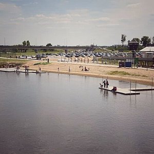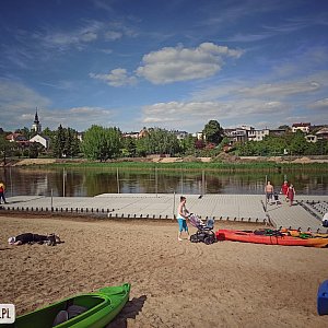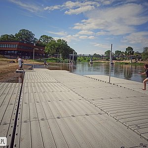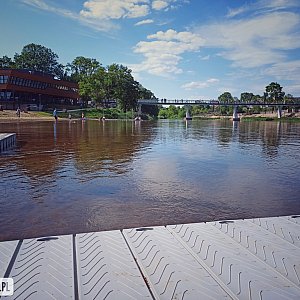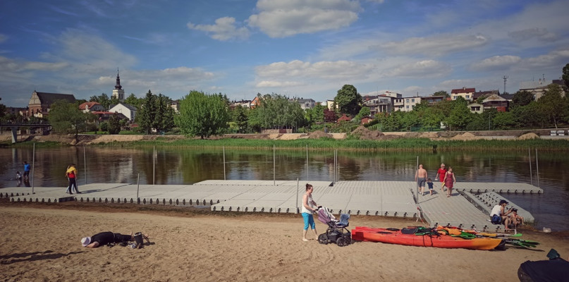 W ubiegłym tygodniu na rzece Warcie w Uniejowie pojawiły się pomosty, które już przypadły do gustu turystom odwiedzającym plażę. Wciąż trwa budowa bulwarów.