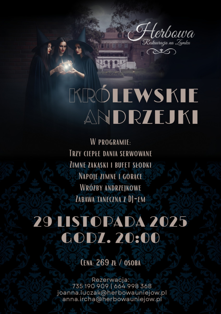W tym roku Restauracja Herbowa zaprasza wszystkich miłośników elegancji, tańca i dobrego smaku na niezwykłe „Królewskie Andrzejki”, które odbędą się 29 listopada 2025 roku o godzinie 20:00 w historycznych wnętrzach uniejowskiego zamku.