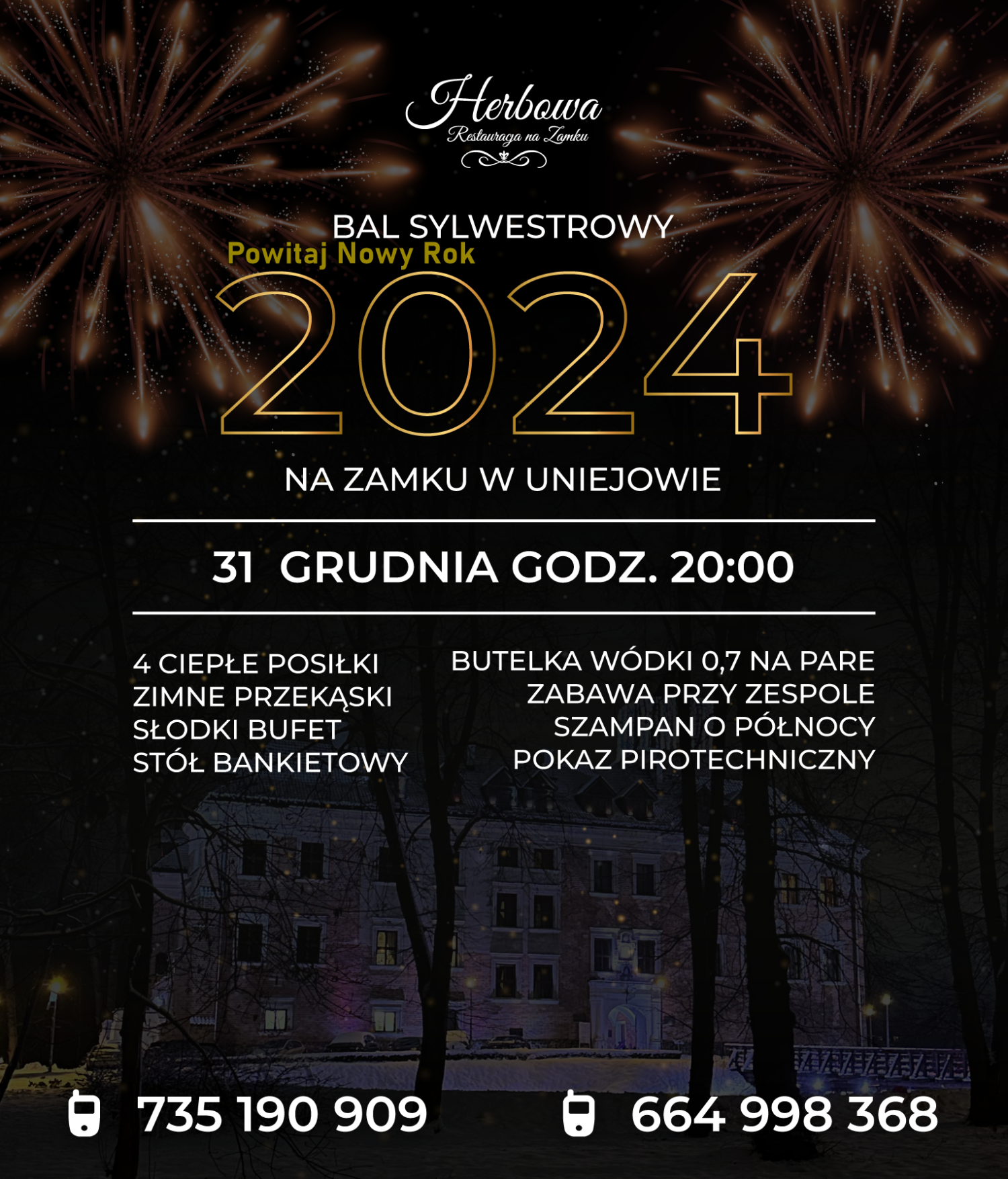 Szukacie pomysłu na niezapomnianego Sylwestra? Wraz z przyjaciółmi marzycie o iście królewskim balu? Restauracja Herbowa na Zamku w Uniejowie od lat organizuje niezapomniane bale na pożegnanie starego i przywitanie Nowego Roku. Także w tym roku przygotowała niezwykłą ofertę sylwestrowej zabawy.